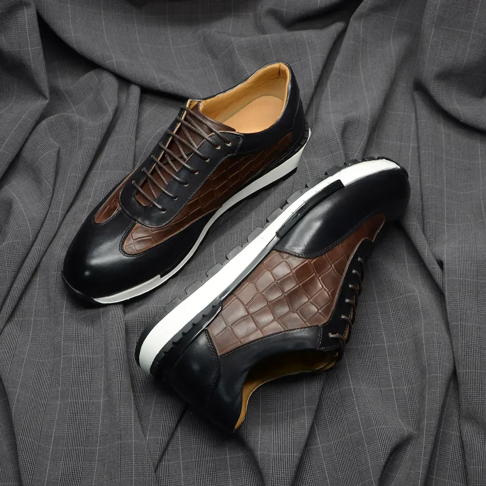 Alliez élégance et confort avec ces baskets Oxford pour hommes, confectionnées en cuir de vache véritable de qualité supérieure et dotées d’un motif crocodile sophistiqué. Parfaites pour le printemps et l’automne, ces chaussures apportent une touche de style classique européenne à vos tenues décontractées ou semi-formelles.