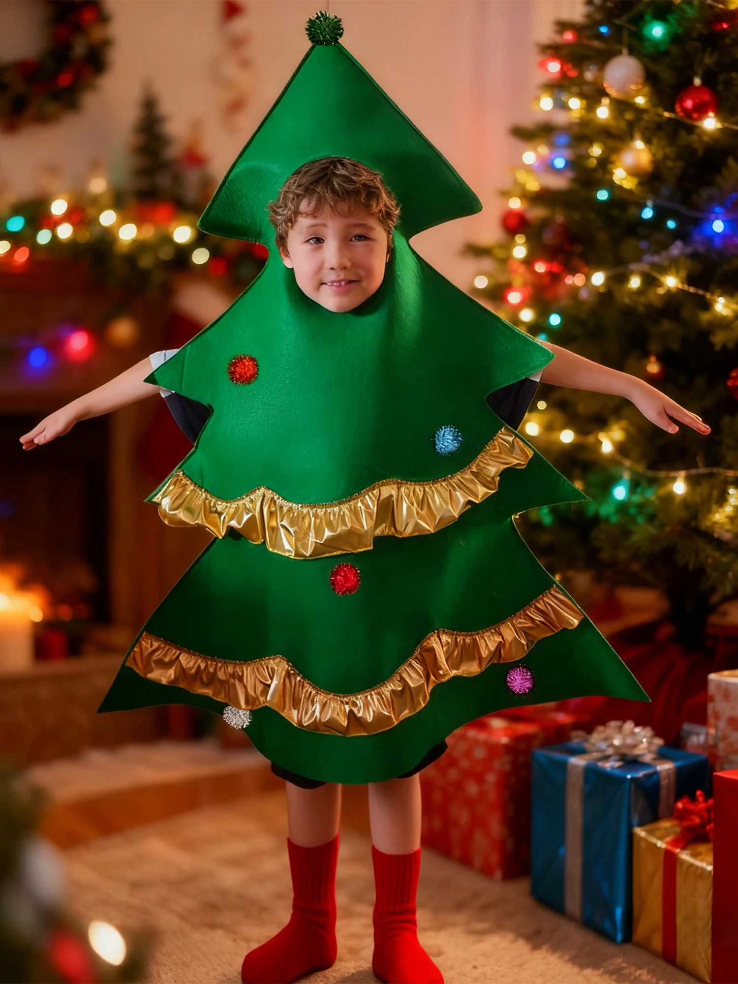 Transformez les fêtes en un moment magique avec ce costume d’arbre de Noël pour enfants, parfait pour les vacances, les fêtes à thème ou les séances photo amusantes. Conçu en polyester de haute qualité, ce costume est léger, confortable et durable, idéal pour que les enfants puissent bouger librement tout en restant dans l’esprit festif.