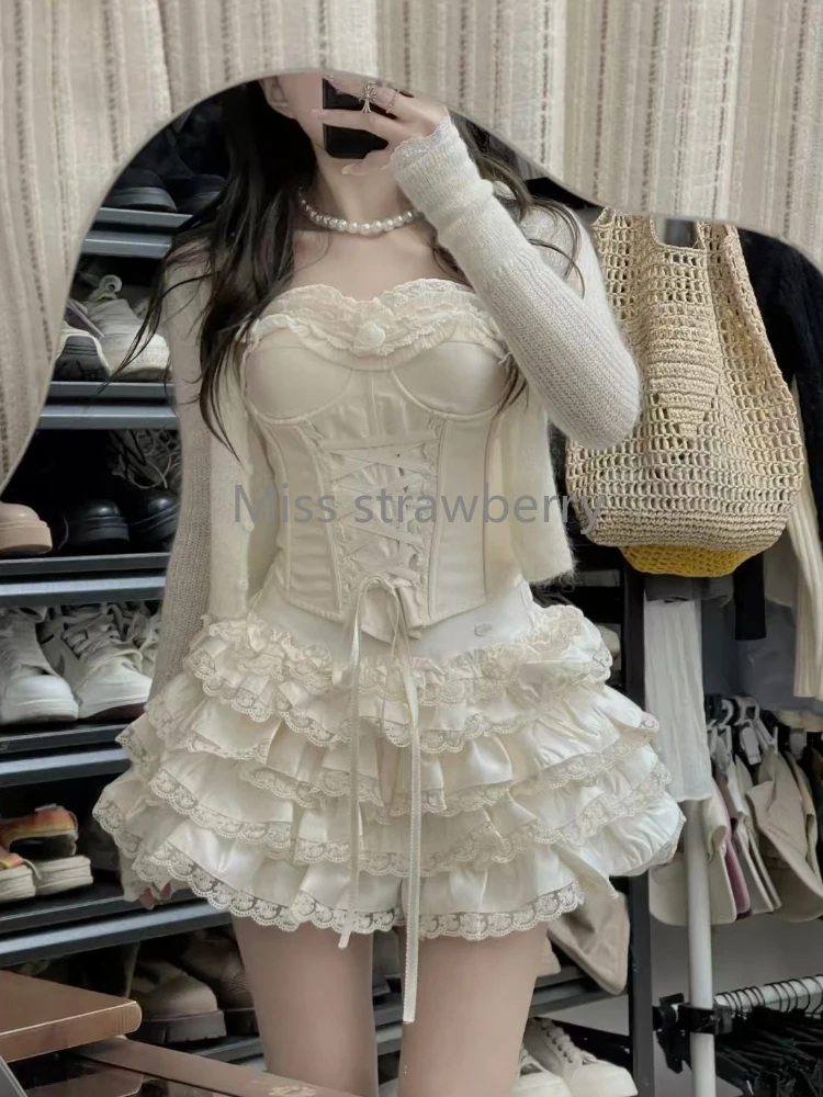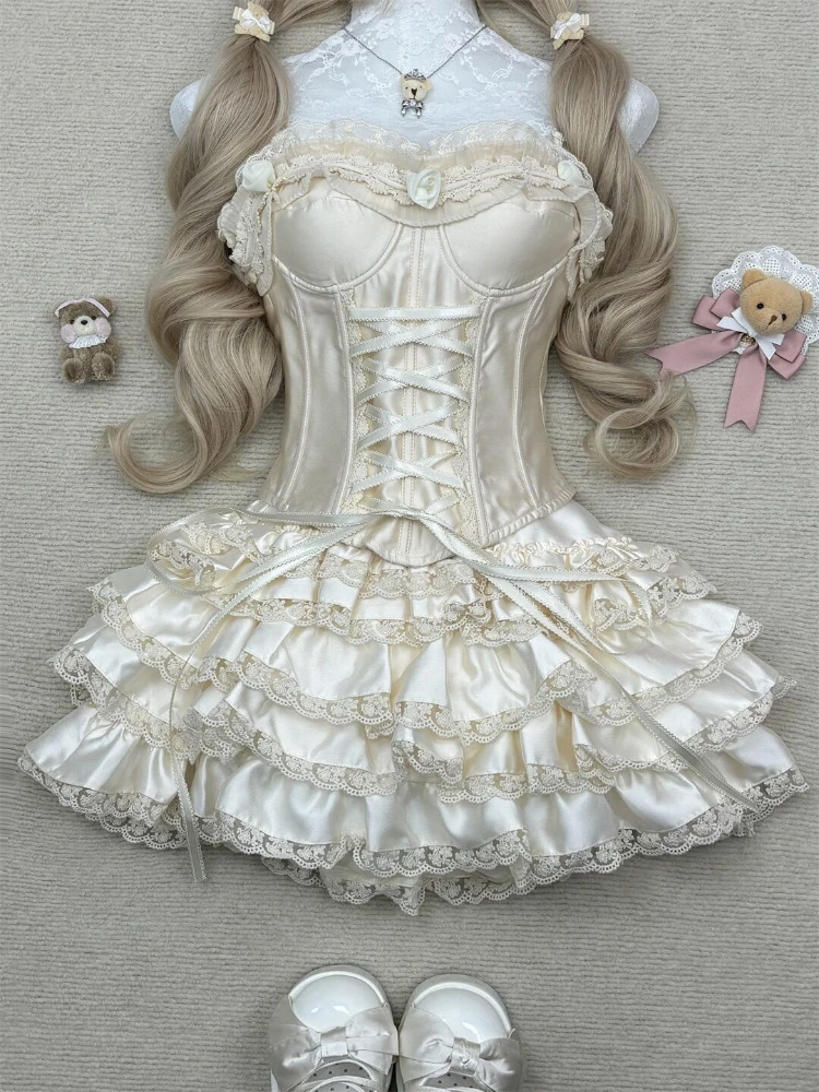 Le top sans bretelles, orné de dentelle délicate, ruchés et nœud élégant, apporte une touche de charme et de sophistication. La jupe courte au-dessus du genou, avec taille élastique, assure un ajustement parfait tout en mettant en valeur vos jambes avec élégance. Sa silhouette A-line et coupe slim flatte toutes les morphologies.