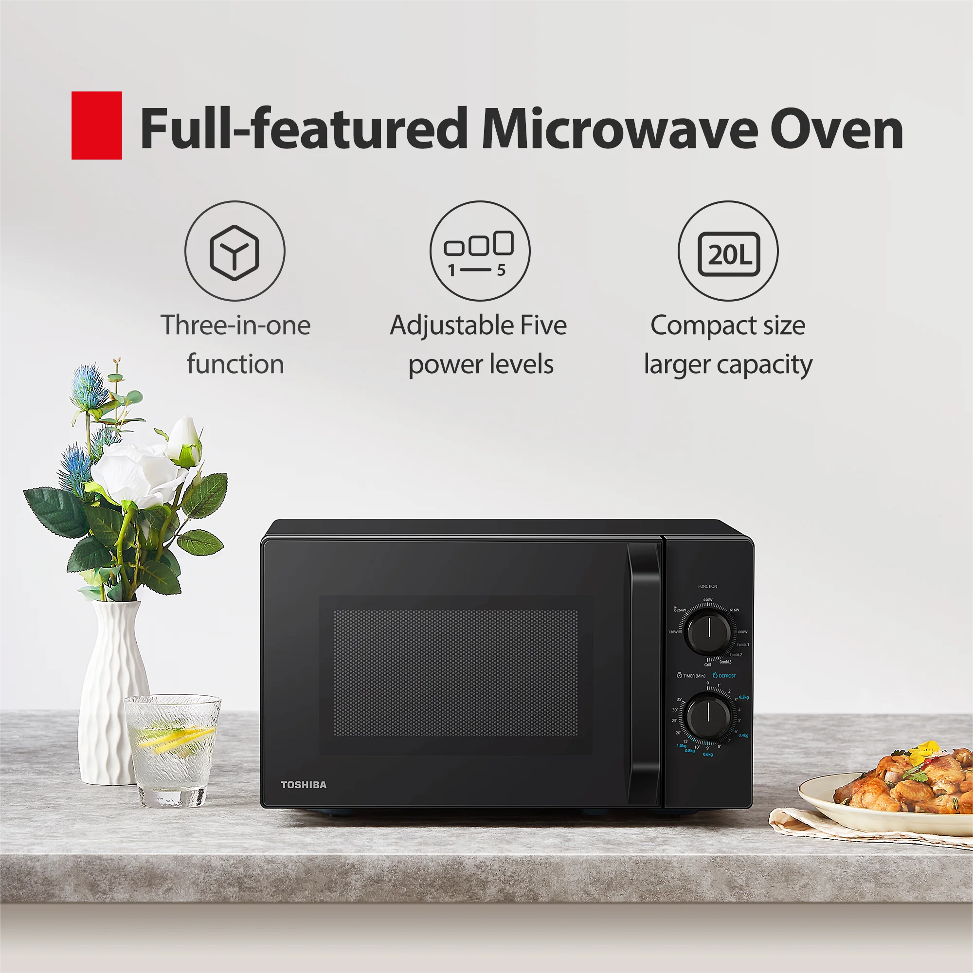 - Function: Griller,Vrai micro-ondes,grade régulier