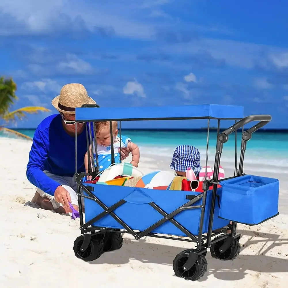 🛒 Chariot Pliable avec Canopy – Le Compagnon Ultime pour Shopping, Pique-nique et Aventures en Plein Air