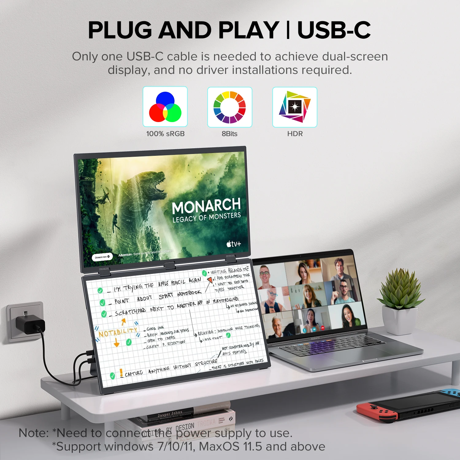UPERFECT 15,6″ Double écran pliable empilé FHD 100% sRGB pour ordinateur portable