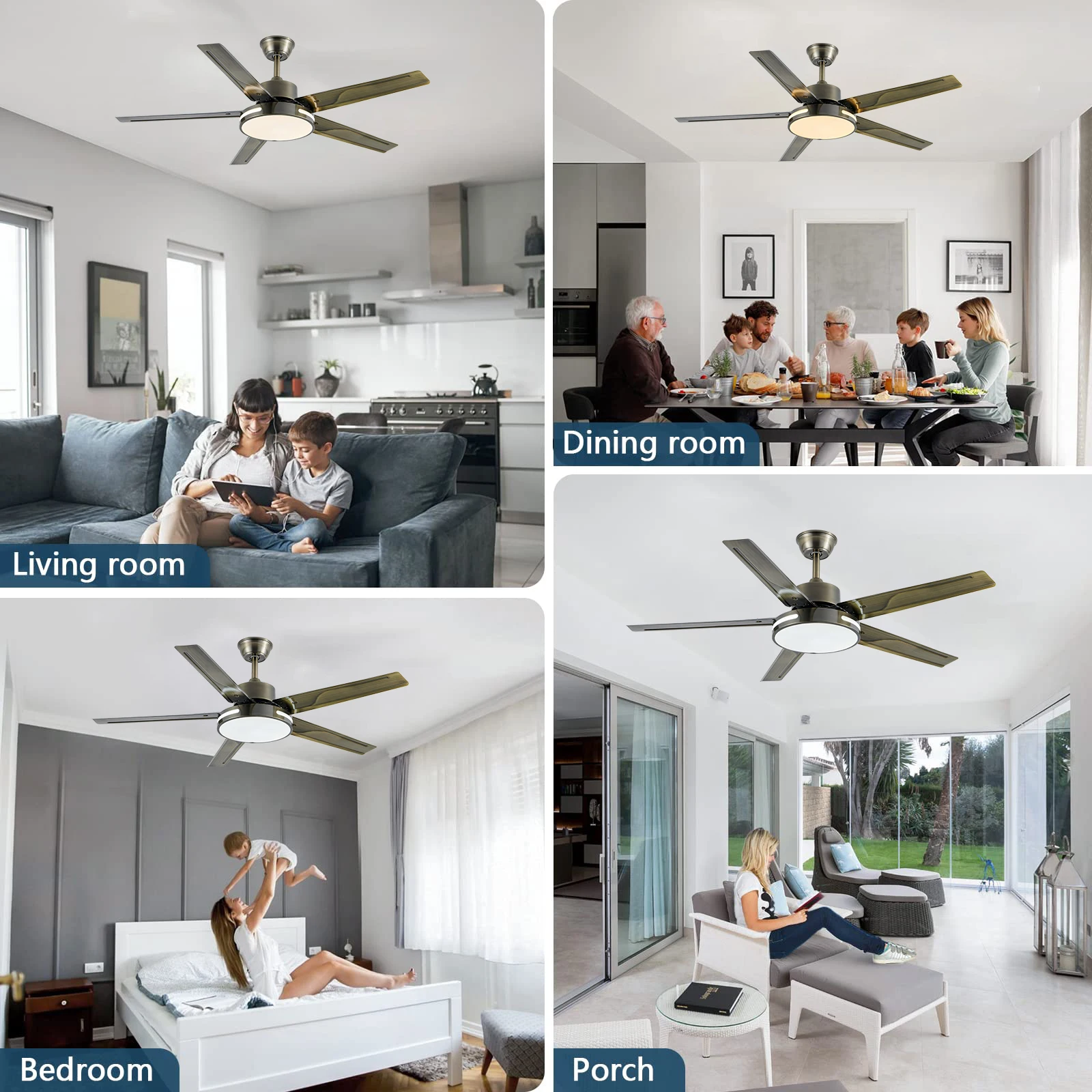 Il s’agit d’un ventilateur moderne et simple avec lumières, adapté aux pièces, cuisines, bureaux, salon, salle à manger, balcon, etc.